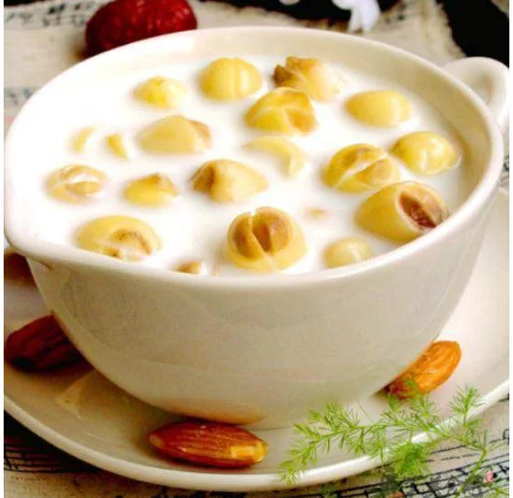 牛奶炖杏仁是一道甜品,主要原材料是杏仁和牛奶。