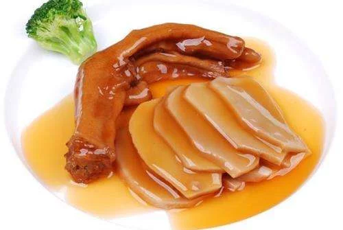 松茸扣鹅掌是一道美食,主要食材有冻松茸、鹅掌等。