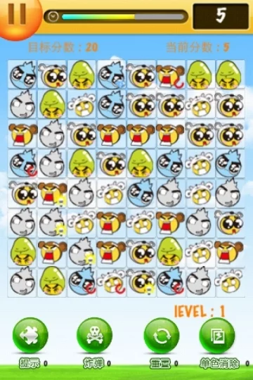 玩家只需用手指轻轻拖动图案,并将三个相同的图案打横或者打竖连接在一起即可消除该组图案。越是挑战,越是刺激,并且完美利用了触屏手机的特性,操作非常直观,玩家只需要在屏幕进行划动即可轻松把两个物体轻松对调,使玩家可以更加快速地通过关卡。每当通关或失败时,就要出现十分可爱的卡通形象提示。每个关卡都会稍微增加难度,提高了游戏的耐玩性。