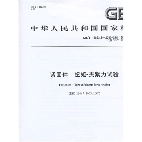 "紧固件扭矩来自-夹紧力试验"英文标准名称 为 Fasteners - Torque/clamp force testing,发布日期 Issua唱毛破目nceDate 为2011-1-10,实施日期 Execu360百科teDate为 2011-10-1。标准号是StandardNo: GB/T 16823.3-2010,