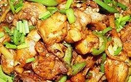 配料:蒜子60克、姜5克、香莱2克、青蒜苗50克、干椒10克、