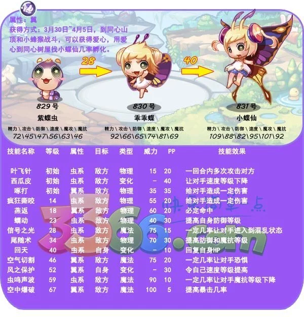 小蝶仙:乖乖蝶40级进化而来。