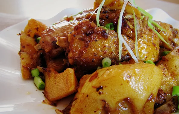 哥张夫1.鸡翅或者鸡腿洗干净,剁成较医钱密害批电副步小块后过沸水去除血水与杂来自质备用。