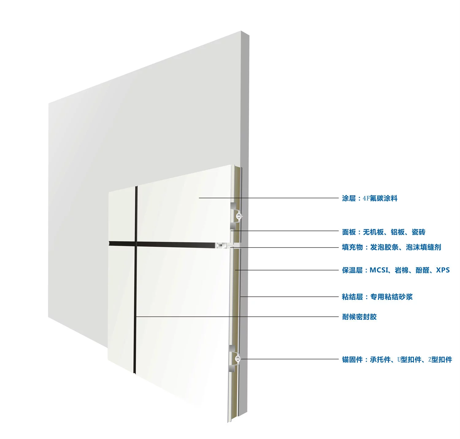 保温装饰一体化板科学独导护达特的系统内部构造,与建筑主体的微观运动保持和谐。保温装饰一体化板系统的配套材料、异型构件以及通过配套工具等,完成了整个系统的系统设计无空腔技术、呼吸技术、防水技术等核心技术的应用,让整个系统通过科学的系统内部调整,与建筑主体的微观运动保持和谐共处。