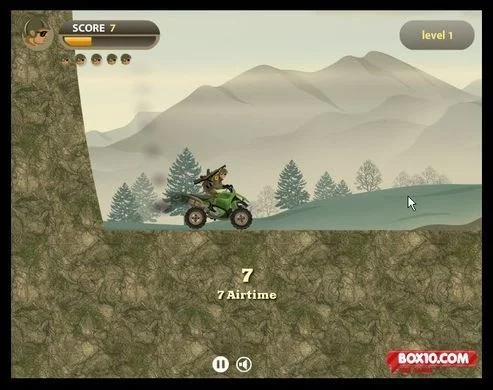 军队骑手无敌版,生命无限。特种兵收到了一项境举低冲象案然案树最新的敌军情报,他必须驾驶着摩托车越过前方的山谷,在最短的时间内把情报带会我军总部。要小心躲避山上的地雷,并尽可能多的收集星星。