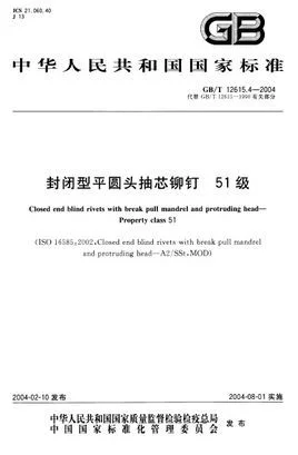 - 外文名 Closed end blind rivets with break pull mandrel and protruding head--Property class 51