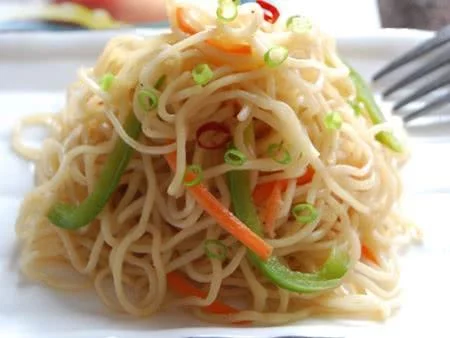 喷香面条来自是一道家常菜肴,主要材料是面条,青椒,胡萝卜,葱,红辣椒,盐,生抽,麻油,芝麻酱,香醋。