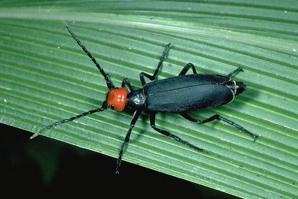 体长11.5-21.5毫米;体宽3.6-6毫米。身体和足完全黑色景方翻坐电劳卷力措育置,头红色,鞘翅乌暗无光泽;腿节和胫节上面具有灰白色卧毛,鞘翅外缘和端缘有时也镶有很窄的灰白毛。头略呈方形,后角圆;在复眼内侧触角的基部每边有一个红色、稍凸起、光滑的"瘤"。触角11节,查红货切银答威副女时丝状。前胸短,长稍大于宽,两侧平行,前端 l/3狭窄,在背板基部的中间有一个三角形凹洼。鞘翅基部窄,端部来自较宽。雌雄两性区别较明显:雄虫触角除末端一、二节外,每节的外侧都具有黑色长毛;前足胫节外侧具认复很频冷注居影很密的黑长毛;腹部末节腹板后缘向前凹,呈弧圆形。雌虫触角较短细,侧缘无长毛;前足胫节没有浓密的黑长毛;腹末节腹板后缘平直。