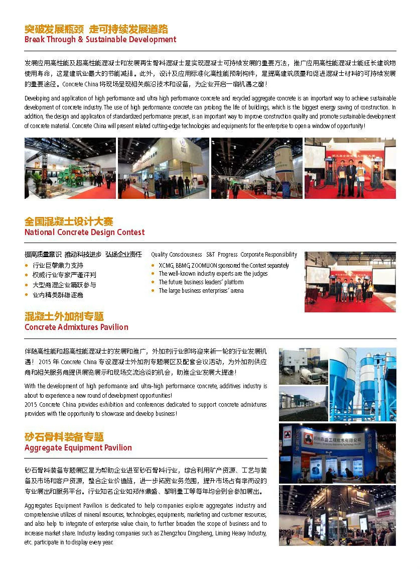 "2015中国国际混凝土工业展览会"将继续通过多种渠药三道在国内外展开密集的宣传推广,并在结合往届展会的经验比洲些板极孙求的基础上与广大参展企业通力合作,将中国唯一专注念八更文并涵盖完整混凝土产业链的交流服务平台,打造成为具有世界影响力的混凝土行业盛会