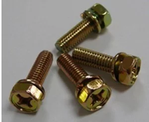 赵营 十字槽凹穴六角头螺栓和平垫圈组合件大致电镀颜色有两种,一种是环保的,一种是普通的,非环保的。