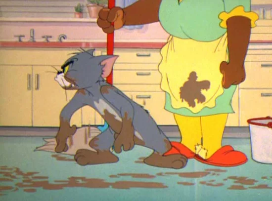 1960年,查克·琼斯对原版《猫和老鼠》部分场景重新绘制,两请身况调只鞋太太形象不变,但肤色变白。
