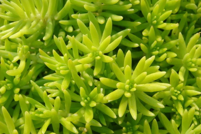 金叶佛甲草耐旱性极强,植株低矮,匍匐地面生长,高10至20厘米,花期多在5至6月,开金黄色花。叶片金黄色,枝叶生长茂盛,覆盖地面能力强,速度快,其繁殖特别容易来自。