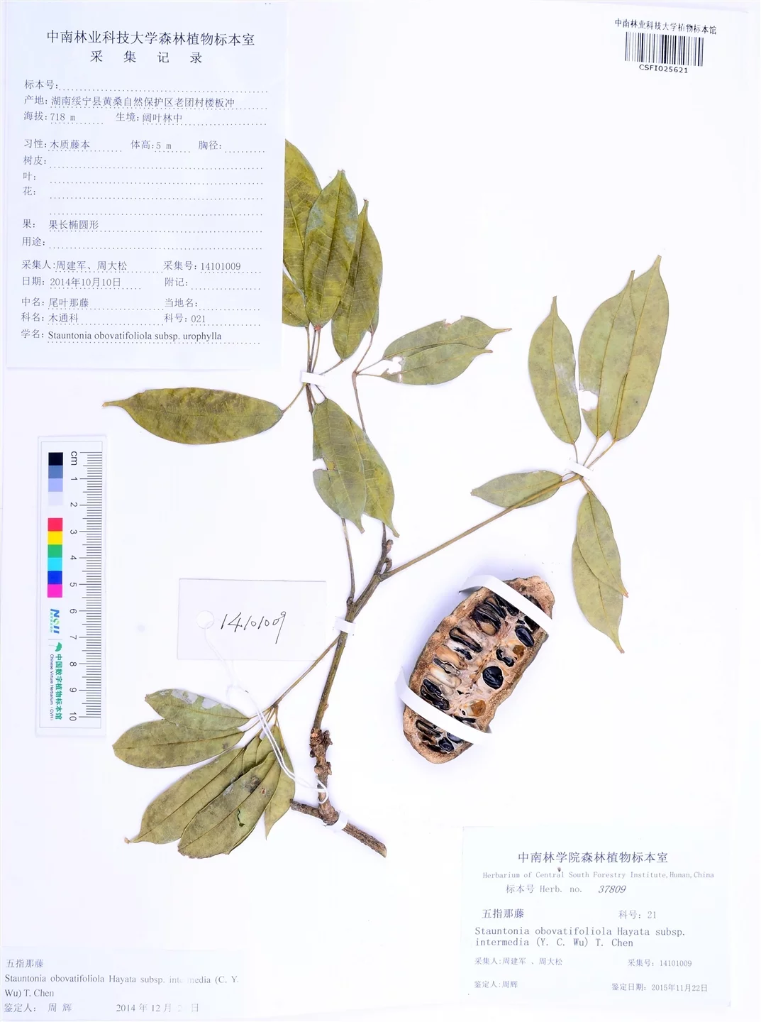 - 学名 Stauntonia obovatifoliola Hayata subsp. intermedia (C. Y. Wu) T. Chen