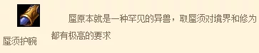 蜃须护腕是网络游戏《QQ华夏》中法师角色的防御护腕 中文名 蜃须护腕 装备类别 护腕 使用等级 53 档次 4 装备名称 蜃须护腕 游戏装备 QQ华夏:法师角色 防御护腕 装备描述:蜃原本就是一种罕见的异兽,取蜃须对境界和修为都有极高的要求 图片 蜃须护腕 点击展开全文 转载请注明出处安可林文章网 » 蜃须护腕