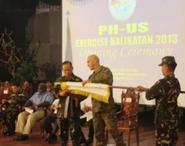 菲律宾与美国之间一年一度的茶名"肩并肩联合军事演习"2012年4月16号至4月27号在菲律宾吕宋岛中部及西南隅的巴拉旺省举行。