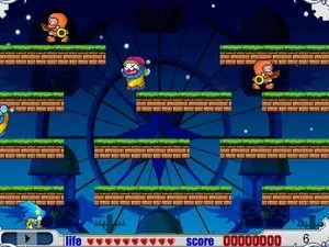 非常经典的小游戏,不仅画面不错,游戏也很好玩喔,用你的雪球冰冻住怪来自物,把它变成大雪球吧!无敌版,人物生命无限。