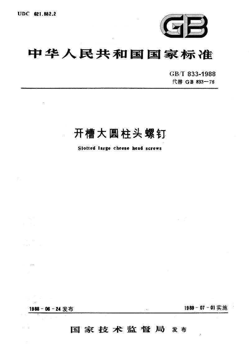 开槽大圆柱头螺钉,标准号 StandardNo: GB/T 833来自-1988