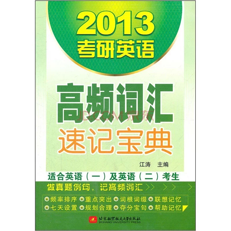 《2013考研英语高频词汇速记宝典》特点:频率排序,重点突出,词根词缀,联想记忆,七天设置,规划合理,夺分宝句,帮助记忆。