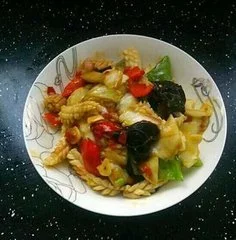 (4)然后,再倒入鱿鱼,加点料酒、剁椒、鸡精炒匀,即可。