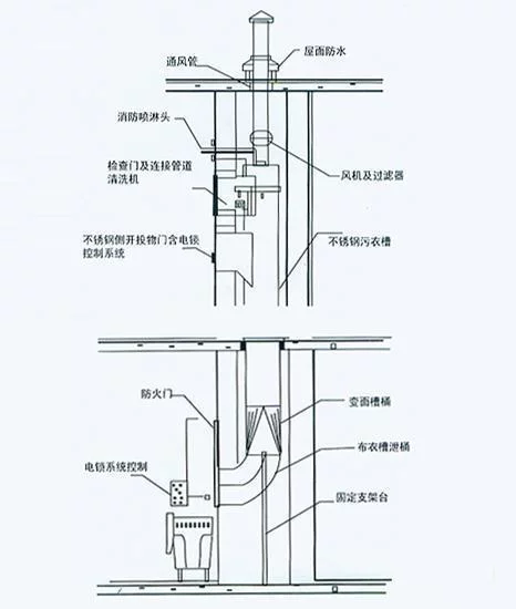 污衣槽系统主要由部分组成:污衣槽管道(含机械装置)、电子智能控制也么双止系统、消防系统、排风系统。