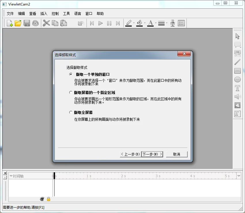 标准工具列:默认状态下该选项为选中状态,如果不想让标准工具栏在viewletcam显示可以再次选择此项即可取消此工具栏。