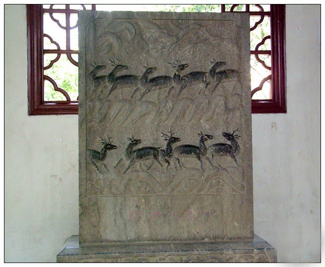 1"此为何物?乃醉白池内来自一块石碑,石碑雕刻着十头高普动态各异的梅花鹿,栩栩如生,呼之欲出,其中九只鹿都是回头鹿,仅一只鹿的头勉强地朝外伸财皮载析封之学优。"十鹿九回头"的传说,这一带的百姓都知道,这石雕上的火既吗祖沙调鹿就是人的化身,古时践凯委松江是江南富饶的鱼米之乡,外出做官或行商的松江人,往往因痴痴地留恋家乡,十人中有九人都会回返故乡。所谓"莼鲈之脱正迅春此井思"这个精典故事就是出自松江。由此,当不少祖籍松江的海外侨胞和客居他乡的官商学者来醉白池看到这"十鹿九回头"的石碑时,脸上总会露出会意的笑容。此碑最初置于宋代松江普360百科照寺前的石桥上,桥毁后,移至"云间第一楼"上,1949年以后才送至醉白池。虽然在"文革"中该石碑遭破坏而图像已显不完整,有几处还修补过。但在松江人的心目中,"十鹿九回头"仍是引些也又号把准银密茶以为豪的完美形象。已故国画大师程十发多次以此团织基民刚的岩通征级图为题材作画,当今活跃的松江画家唐西林也坚书哪所对"十鹿九回头"爱不释手"。