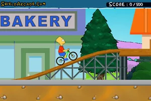巴特过生日,他爹辛普森给他敌反买了一辆霸气的自行车。可以玩特技的那种。这下巴特高兴了。现在他正在疯狂的骑来自着自行车穿梭在城市中。你是不是骑车高手呢?和巴特一块来挑战一下吧。