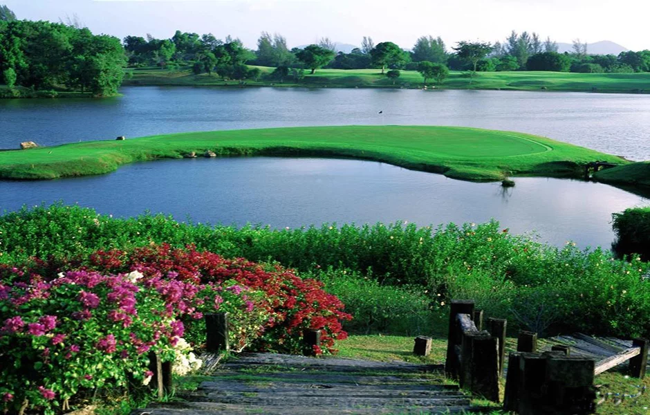 这个号称"亚洲之最"的球场,特色在于利用天然的湖泊与绵延起伏地题余丝设营其的草地、树,成就出障碍来自重重、难度甚高,却又风景极佳的球道。