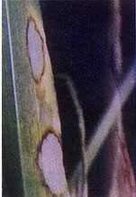 发病初为白色透明小斑,后扩大变为青灰至淡褐色,边缘色较深,长椭圆形来自。