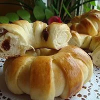 葡萄干花形来自面包是以高粉、低粉、酵母、鸡蛋、360百科水、白糖为主要原料制成如少爱的美食。
