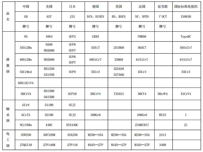 序号 | 外国牌号 | 所属国家或厂家 | 钢种类别 | 中国 | 美国 | 日本 | 德国 | 主要特点及用途 |