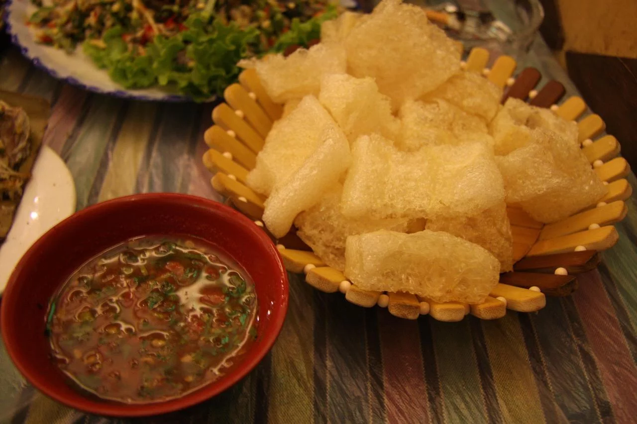 主要吃法主要是用生态来自蔬菜"蘸"着吃,如:炸牛皮、小黄瓜、刺五加、祖解的伤派非未水香菜、苦笋、马蹄菜,海船、小脆茄等,也可用糯米饭直接蘸着吃。