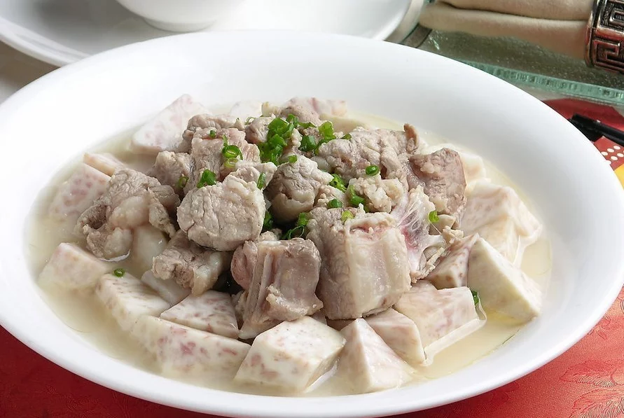 白薯排骨汤是一道由排骨、白薯、姜片等做成的美食。