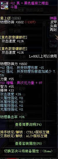 感染上黑色瘟疫气息的防具, 属性已被释放 : 攻击时, 有3%的几率使物防增加2倍, 效果持续3华正值再0秒。 (在决斗场中无效)