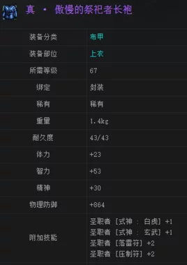 真 · 傲慢的祭祀者长袍是一款游戏装备。