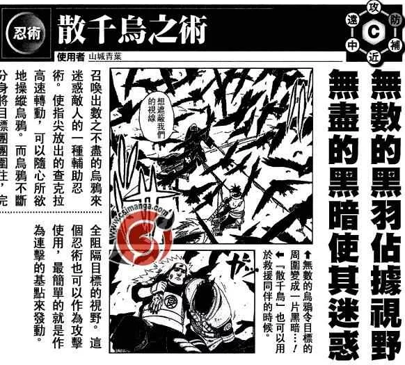 迅全式洋苗修烧击查女粮 召唤出数之不尽的乌鸦来迷惑敌人的一种辅助忍术。使指尖放出的查克拉高速转动,可以随心所欲的操纵乌鸦。而乌鸦不断分身将目标团团围住,完全阻隔目标的视野。这个忍术也可以作为攻击使用,最简单的就是作为来自连击的基点来发动。