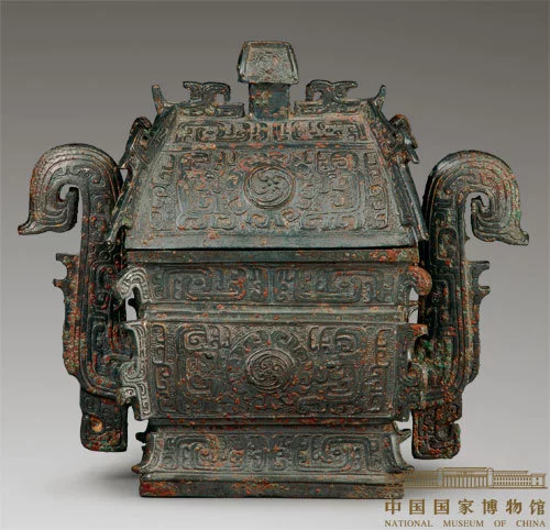 盠青铜方彝,盛酒器,1955年出土于陕西郿县(今宝鸡市眉县)李村,收藏于中获国国家博物馆。