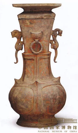 朱绘兽耳陶壶,1957年出土于北京市昌平区松园村战国墓葬,为战国时期燕国的盛酒器。现收藏于中国国家博物馆。