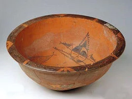 古代半坡人在许多陶盆上都画有鱼纹和网纹图案,这应与当时的图腾崇拜和经济生活有关,半坡人在河谷阶地营建聚落,过着以农业生产为主的定居生活,兼营采集和渔猎,这种鱼纹装饰是他们生活的写照。