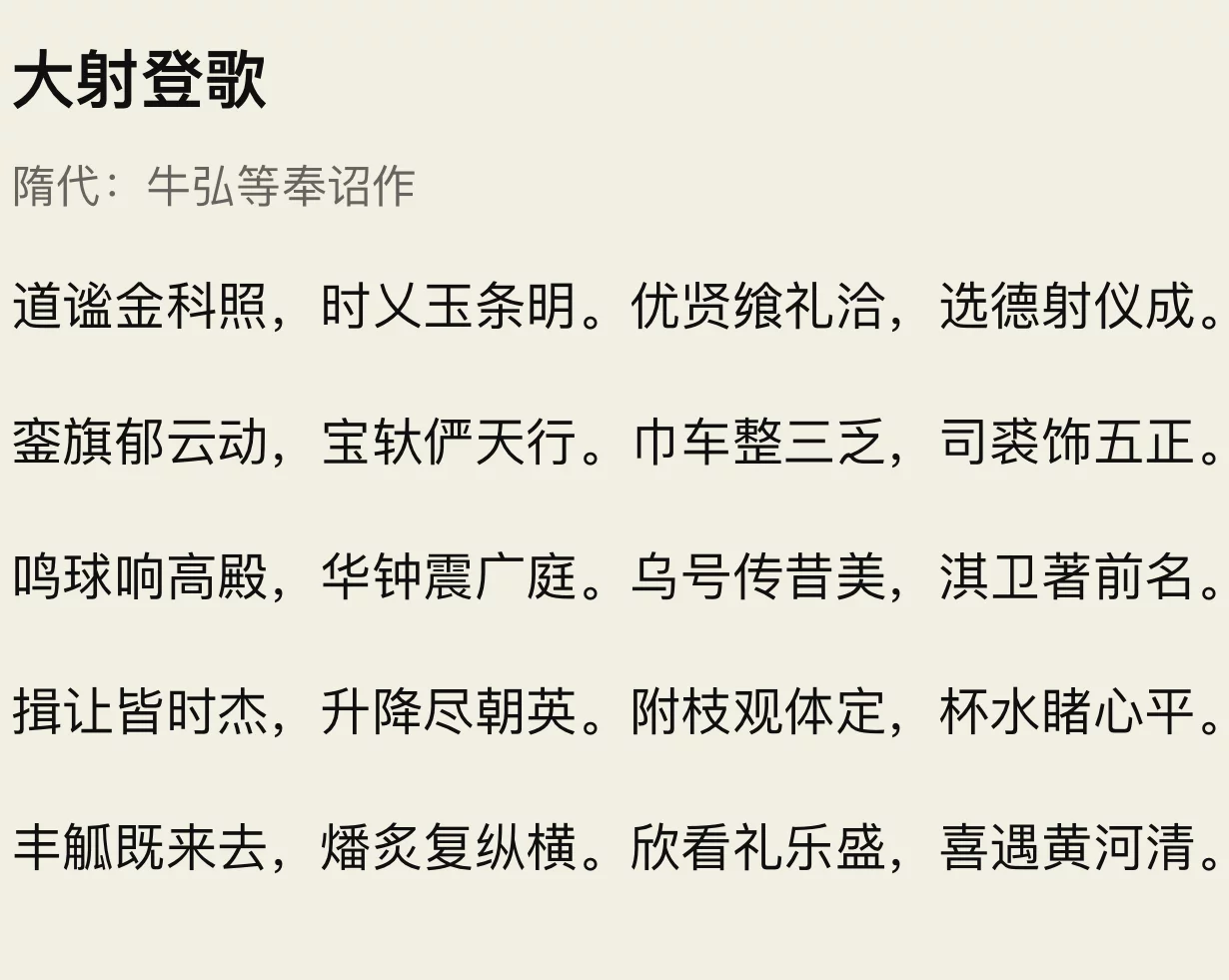 《大射登歌辞》是隋代诗人牛弘创怀作的一首五言古诗。