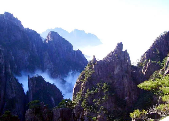 黄山地质公园雄踞于风光秀丽的皖南山区,面积约1200平方公里,是以中生代花岗岩地貌为特征的地质公园。安徽黄山以奇松、怪石、云海、温泉“四绝”著称于世,无处不景,无景不奇。当年,徐霞客诗赞:“薄海内外无如徽之黄山,登黄山而后天下无山,观止矣!”联合国教科文组织专家在考察了黄山地质地貌状况后,对大自然的鬼斧神工发出感叹:“到了黄山莲花峰,发现了地球上的天堂。”、“黄山的美只有用心来感受,没有语言可以表达。”黄山风景区已成为全球为数不多的同时拥有世界文化、自然双遗产和世界地质公园三顶桂冠的地方。黄山以雄峻瑰奇而著称,千米以上的高峰有72座,峰高峭拔、怪石遍布。山体峰顶尖陡,峰脚直落谷底,形成群峰峭拔的中高山地形。黄山自中心部位向四周呈放射状地展布着众多的“U”形谷和“V”形谷。山顶、山腰和山谷等处,广泛地分布有花岗岩石林石柱,特别是巧石遍布群峰、山谷。主要类型有穹状峰、锥状峰、脊状峰、柱状峰、箱状峰等。区内奇峰耸立,巍峨雄奇;青松苍翠,挺拔多姿;巧石嶙峋,如雕如塑;云海浩瀚,气势磅礴;温泉水暖,喷涌不歇。在距今约1.4亿年前的晚侏罗世,地下炽热岩浆沿地壳薄弱的黄山地区上侵,大约在6500万年前后,黄山地区的岩体发生较强烈的隆升。随着地壳的间歇抬升,地下岩体及其上的盖层遭受风化、剥蚀,同时也受到来自不同方向的各种地应力的作用,在岩体中又产生出不同方向的节理。自第四纪(距今175万年)以来,间歇性上升形成了三级古剥蚀面,终于形成了今天的黄山。在这些岩体中,由于在矿物组分、结晶程度、矿物颗粒大小、抗风化能力和节理的性质、疏密程度等多方差异,造成了宛如鬼斧天工般的黄山美景。黄山以奇松、怪石、云海“三奇”和丰富的水景以及它们的相互组合表现其特质,显示了黄山天然的完美和谐,在丰富多变中见其有机统一。在立马桥、天都峰、北海等地段,被认为具有第四纪冰川而闻名。黄山冰川的存在与否,已争论了半个多世纪,至今尚无定论,这也是黄山地质公园又一诱人的魅力所在。以古桥、古登道、摩崖石刻与黄山山水画为特征的黄山地质公园底蕴深厚的文化渗透在雄奇秀美的自然山水之中。其中黄山画派在中国画坛上占有重要位置,对中国山水画的发展产生了重大的影响,是研究中国文化、中国画史的重要资料。总之,黄山地质公园具有花岗岩地貌、第四纪冰川遗迹、水文地质遗迹等地质遗迹和地质景观资源与黄山文化等人文景观资源以及丰富的动植物资源,构成了一座集山、水、人文、动植物为一体的大型花岗岩区天然博物馆