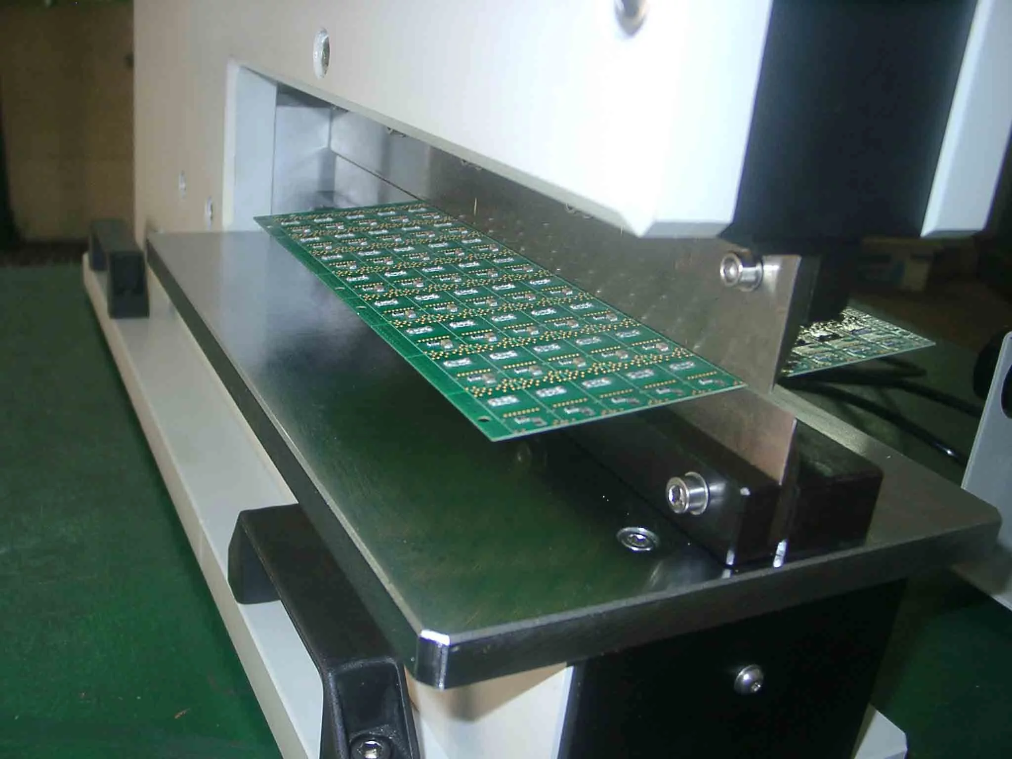 1、电气混合式设计,双直刀分切,特别适用于分割精密SMD薄板,铝线路板