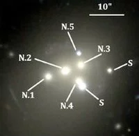 光线扭曲程度取决于很多因素,其中包括146-IG等充当透镜的星系质量。这幅图片的背景处也出现其他透镜星系,天文学家可利用这些星系得出146-IG的质量。然而,事情远非这么简单。天文学家很难将这个星系的质量与星系团本身、气体以及星系团内部可能并非这个中部星系组成部分的物质分离开来。也就是说,只能得出一个估计值。