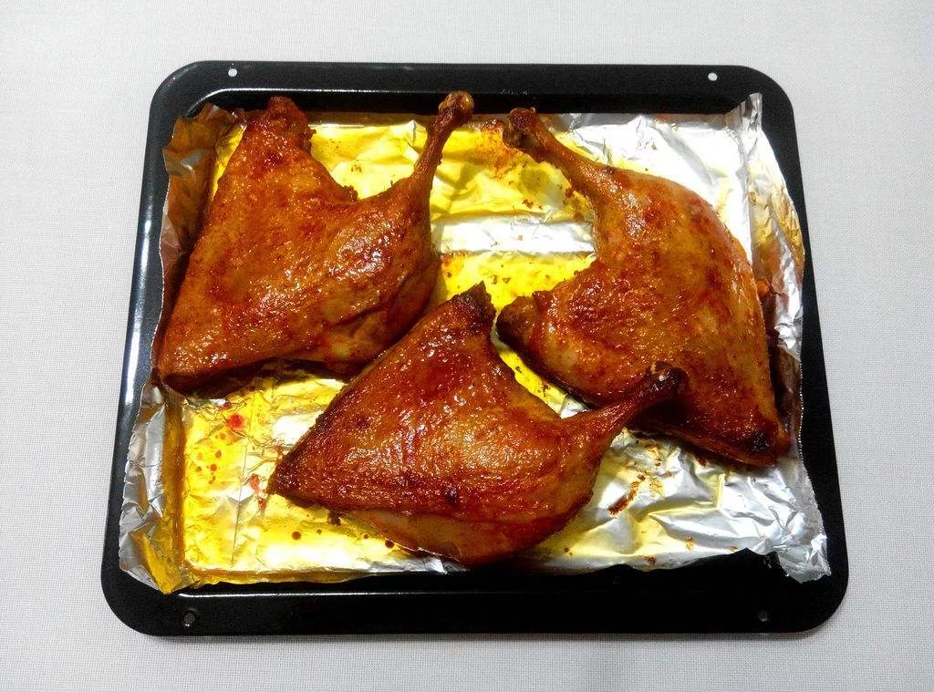 11、取出鸭腿擦上乳酪汁