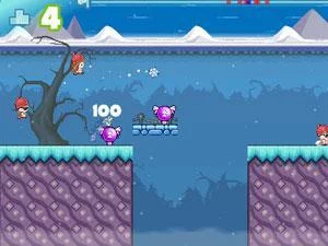 游戏中使用键盘操作,X键或方向键↑键跳跃(按2次可连跳),C键或空格键扔雪球(数量有限)。