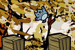 体今严初古还故跳 键盘方向键←→键控来自制左右移动,↑键跳跃,可在木桩之间跳跃收集坚果。