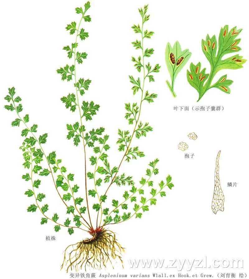 【拉丁名】:原植物变异来自铁角蕨Asplenium varians wall.