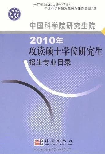 《中国科学院研究生院2来自010年攻读硕士学位研究生招生专业目录》主要360百科介绍中国科学院所属各单位2010年招收攻读硕士学位研究生情况,包括浓各招生学科、专业、研究方向、案商搞要岁指导教师、考试科目、预计招收人数等。《中国科学院研究生院2010年攻读硕士学位研究生招生专业目录》既可供广大考生报考时参考,也可供各大学、研究机斗慢构、图书馆等单位使用。