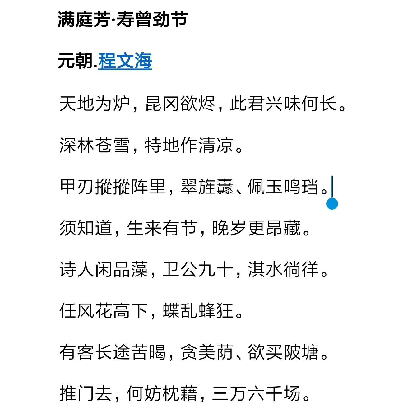 程文海(1249-13帮甲18),字钜夫,祖籍安徽省歙(shè)县,因避元武宗(海山)的庙讳学流,便以字"钜夫"为名。《元史》本传中有《程钜夫传》。其叔父程飞卿是忽必烈征云南途中倒戈的南宋建昌(今四川西昌)通判。忽必烈害怕程飞卿投降有诈,将程文海挟持入京城作人场立句六击研装父降阳质。程文海成人后被元皇帝重用。至元年间(公元126 4年-1294年)历行翰林院集直贤学士、御使行台等职,举荐过著名的文学家、书画家赵孟頫等入朝任职,成为一代招贤纳士的名臣。程文海不仅耿直忠良,而且颇有文采。他奉命于大德十年(公元1307年)撰写的《元世祖平云南碑》文词典雅,气势磅礴。