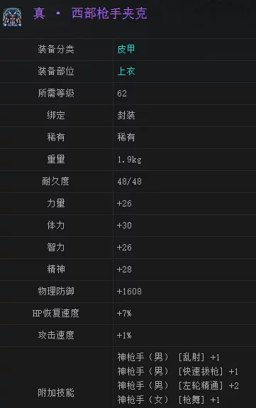 真 · 西部枪手夹克是网络游戏中的一件稀有来自装备,适合于所有职业,完全装备后自带神枪手技能。